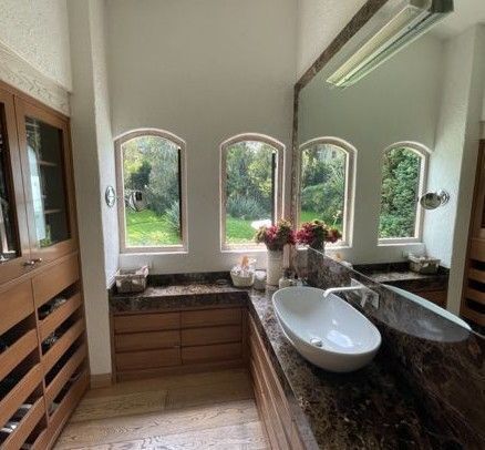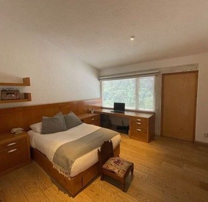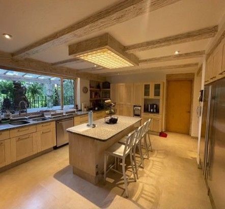 Preciosa casa en venta en Rancho San Francisco, cuenta con un hermoso jardín de muy buenas dimensiones, 4 estacionamientos techados, rodeada de árboles, terraza integrada a la área social y al jardín, excelente iluminación natural, proyecto arquitectónico de excelente gusto. 3 recámaras completas con baño y closet, áreas abiertas, sala, comedor, cuarto de servicio y de lavado. Adicionalmente cuenta con balcón, cisterna, parrilla, terraza, bodega, calefacción, circuito cerrado, cocina equipada, fraccionamiento privado, hidroneumatico, seguridad 24 horas, 1000 metros de jardín.