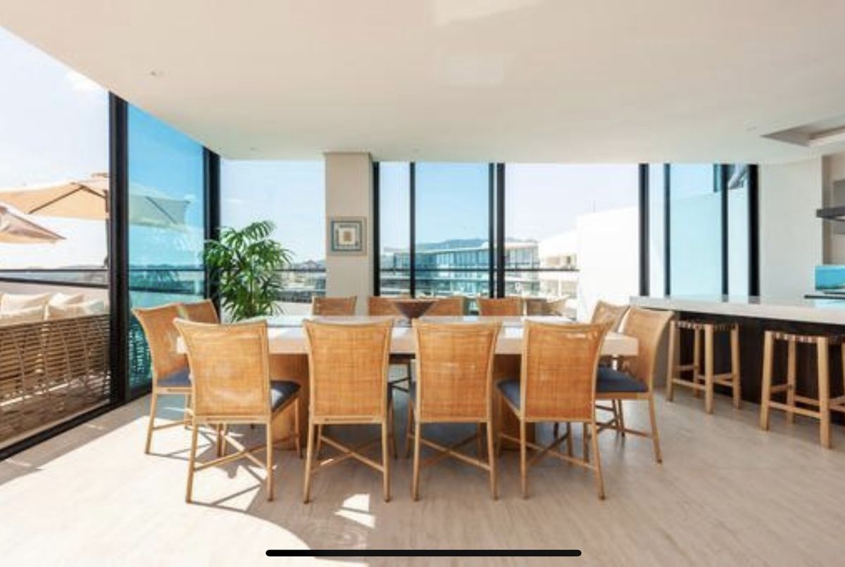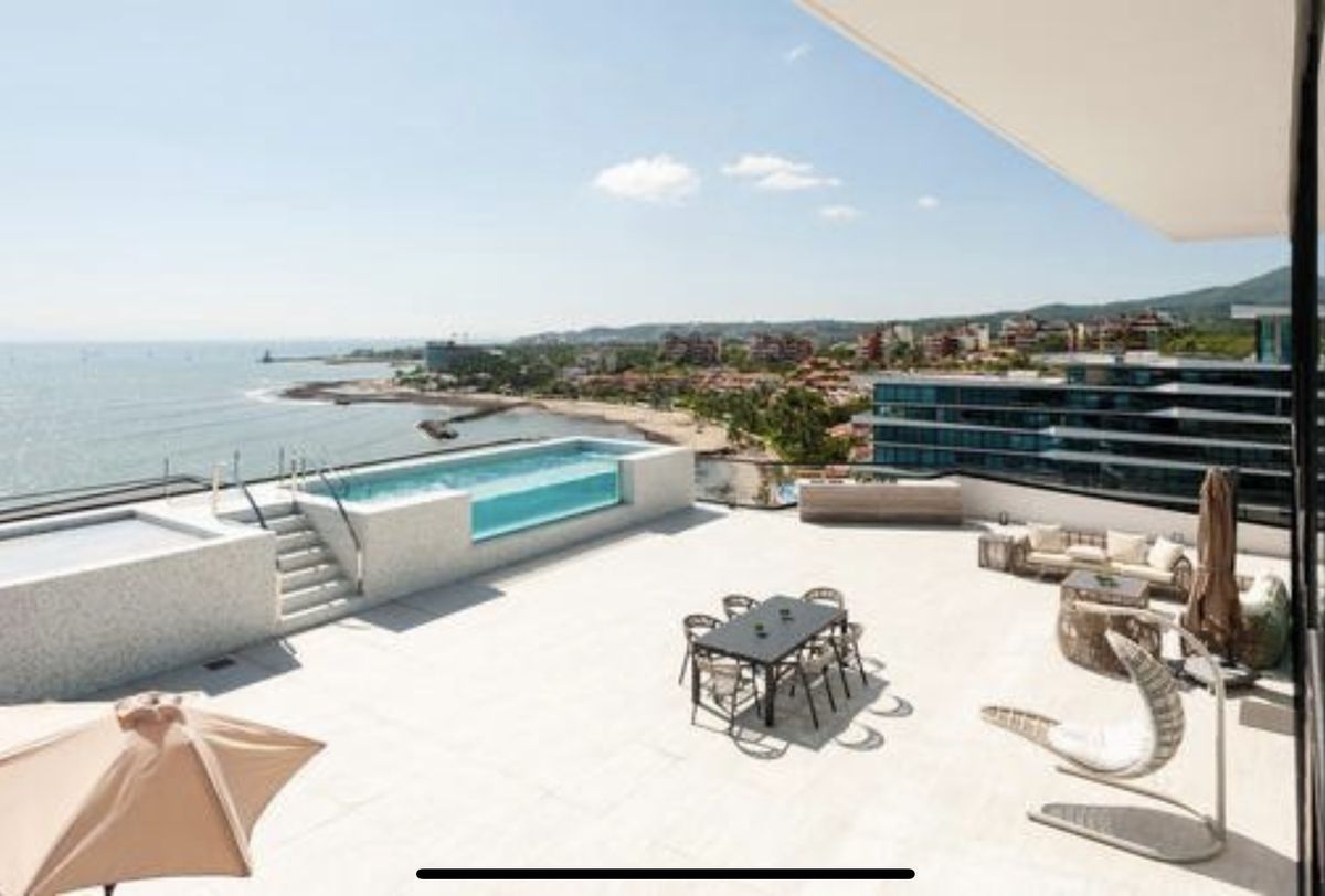 Terraza: Alberca con canal de nado, regadera, chapoteadero, bodega y área con 8 camastros, dos comedores y una sala